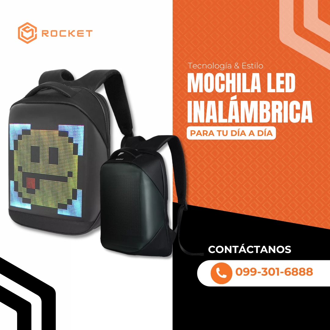 La Mochila LED Inalámbrica combina diseño moderno con tecnología innovadora, perfecta para destacar en cualquier entorno mientras mantienes tus pertenencias organizadas y seguras.